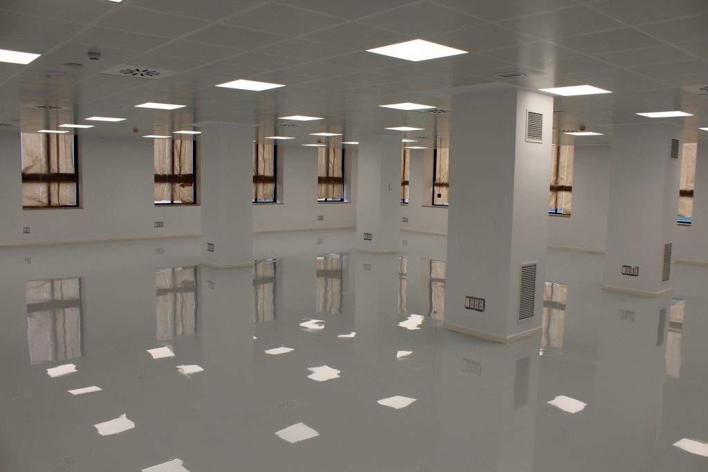 Pavimento con superficie completamente lisa que se aplica principalmente en el ámbito hospitalario, laboratorios industria química y oficinas.